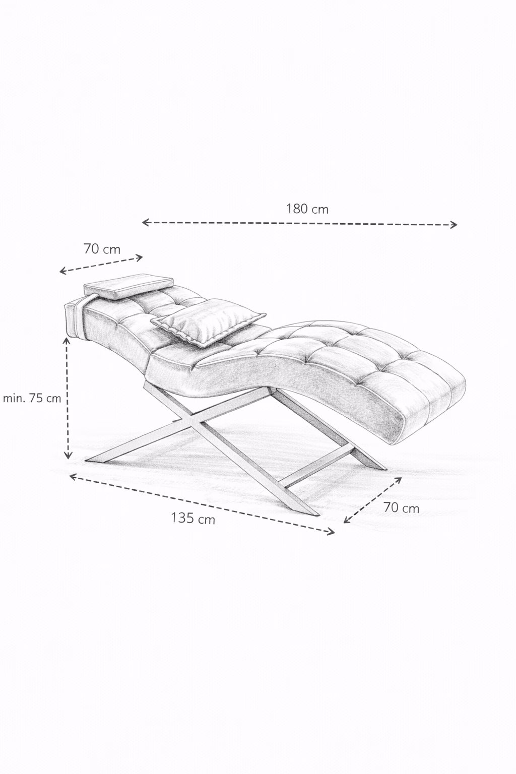 | Wymiary | Wysokość: 75 cm Szerokość: 70 cm Długość: 180 cm |