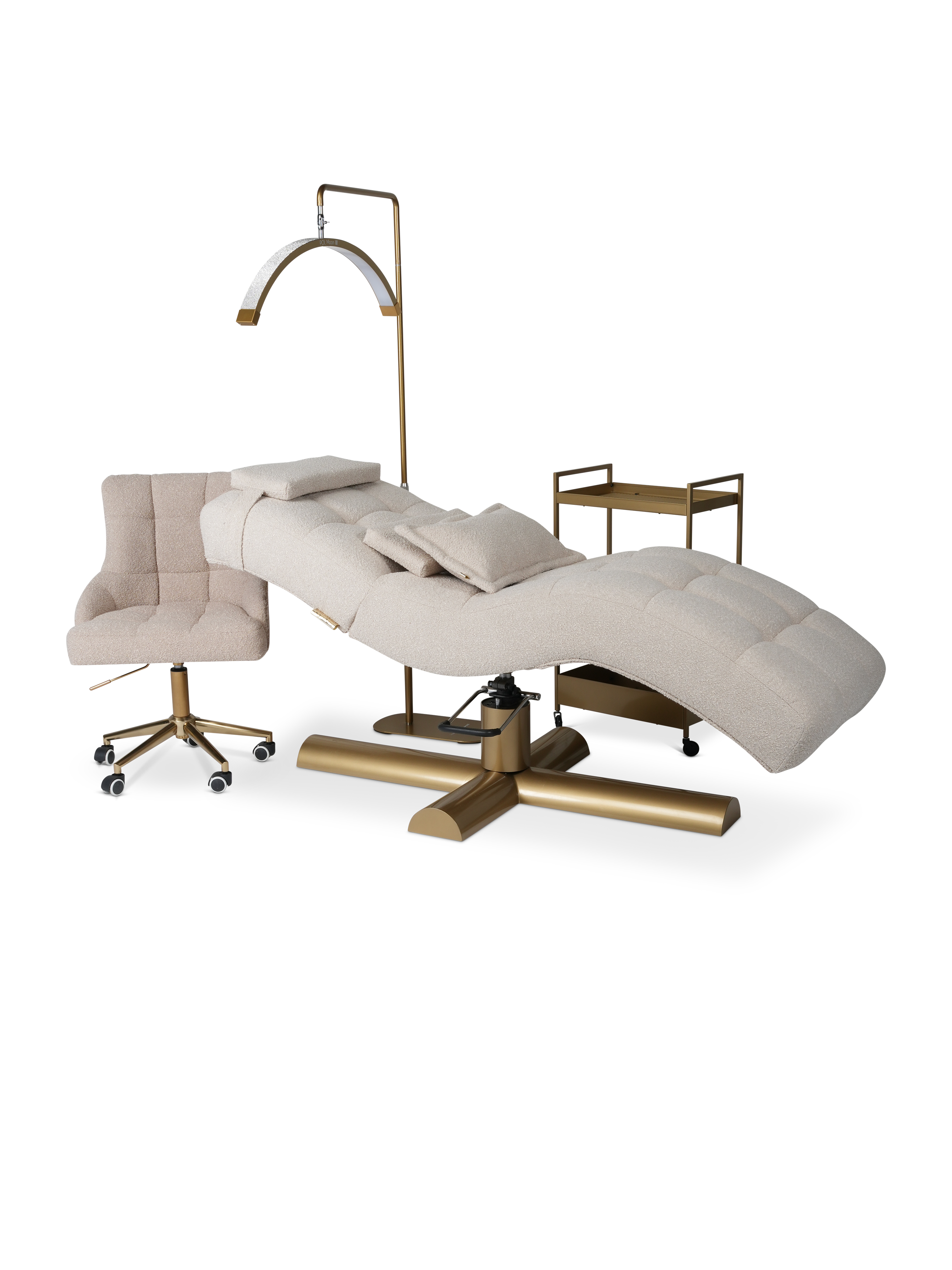 Spersonalizuj łóżko kosmetyczne hydrauliczne Elevate, wybierz kolor pomocnika oraz lampy i ciesz się pięknym wnętrzem swojego gabinetu.